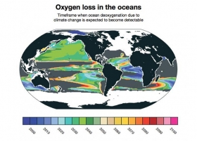 Man-made climate change is already cutting into oxygen levels in some parts of the world's oceans and could start producing new "dead zones" in some parts of the seas by 2030,...