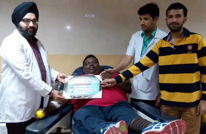 Prakash, who is 90 percent physically disabled and belongs to Mumbai, donated blood for the 77th time at the PGI today. Prakash M Nadar was afflicted by polio during childhood...