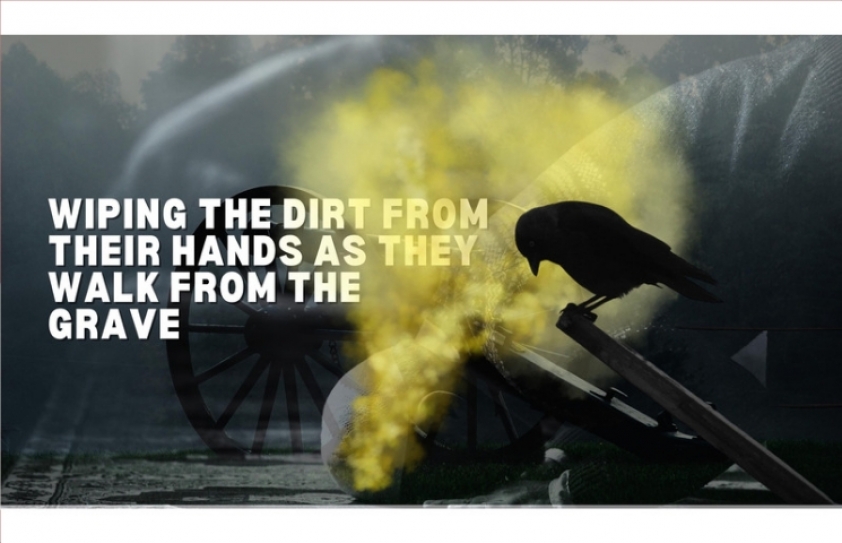 WIPING THE DIRT FROM THEIR HANDS AS THEY WALK FROM THE GRAVE