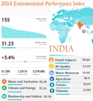India ranks 155th out of 178 countries in its efforts to address environmental challenges, according to the 2014 Environmental Performance Index (EPI). India performs the wors...