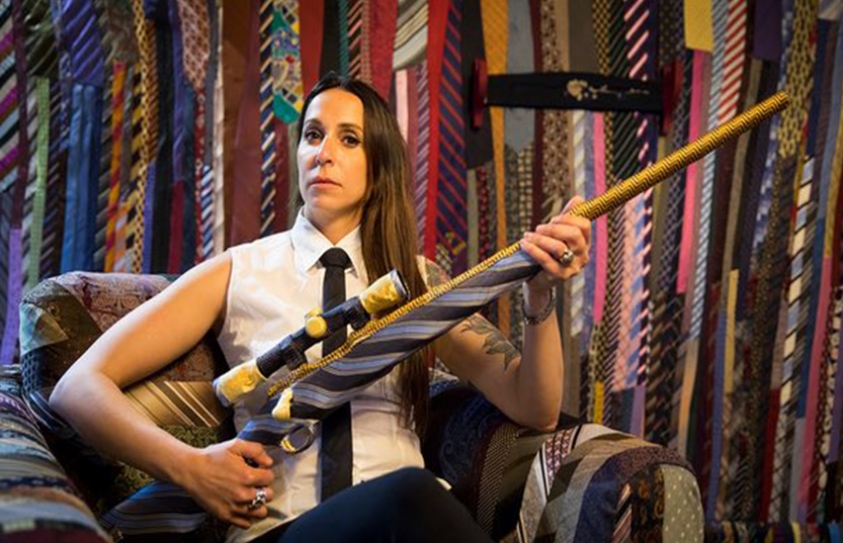 UK-based Israeli artist Michal Cole says work is ‘silent embroidered scream’ against global patriarchy Few items symbolise masculine pomp and power quite like a ne...