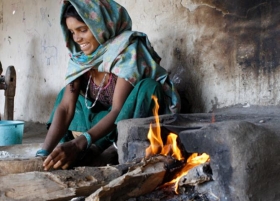 A University of Iowa researcher created an inexpensive metal insert for primitive cookstoves, such as this one used in a remote village in India, that may decrease global warm...