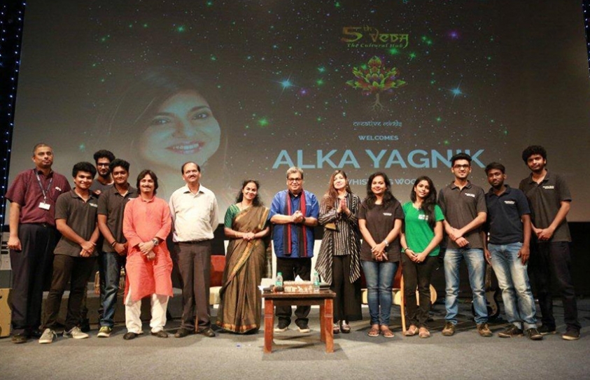 Mumbai 19th April 2017: One of the most illustrious singers of Bollywood, Alka Yagnik entered the auditorium for the 5th Veda session at Whistling Woods International (WWI), a...