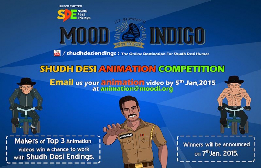 Humor-based Youtube channel Shudh Desi Endings and IIT Bombay’s Mood Indigo collaborate for online animation competition~ Online submission closes by 5th January, 2015~ ...