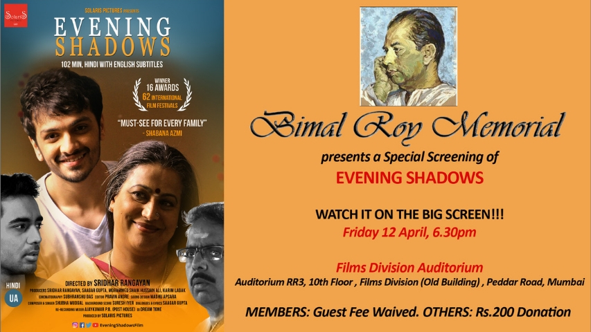 Daughter of legendary director Bimal Roy and founder of Bimal Roy Memorial, writer and columnist Ms. Rinki Roy Bhattacharya said, “Since 1997 Bimal Roy Film Society has been presenting emerging film makers who take up unconventional content. Especially films that project our diverse social reality – be it a documentary, animation, or work of fiction. We believe in engaging with viewers about alternative issues that exist and deserve recognition - not rejection. In that progressive process, we selected Evening Shadows written by Sridhar Rangayan and Saagar Gupta, for its exceptional, bold yet sensitive narrative.”