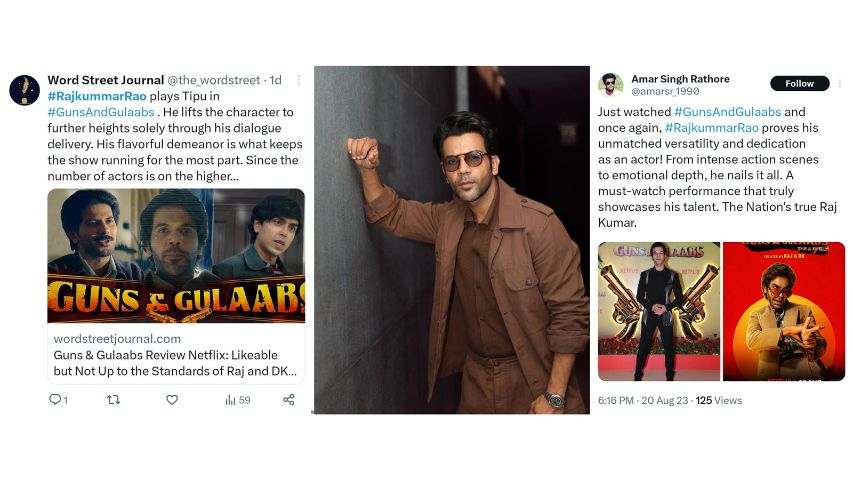 One fan's tweet beautifully captures Rao's versatility and charisma, asserting, "Just watched #GunsAndGulaabs and once again, #RajkummarRao proves his unmatched versatility and dedication as an actor! From intense action scenes to emotional depth, he nails it all. A must-watch performance that truly showcases his talent. The Nation's true Raj Kumar."