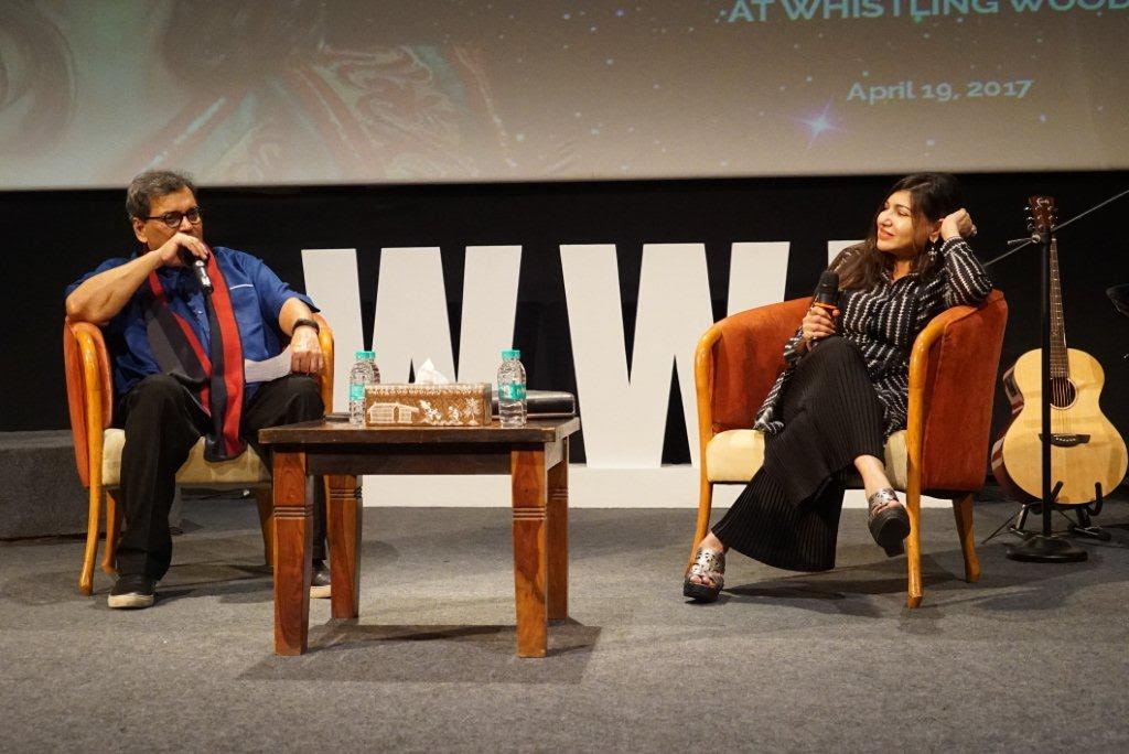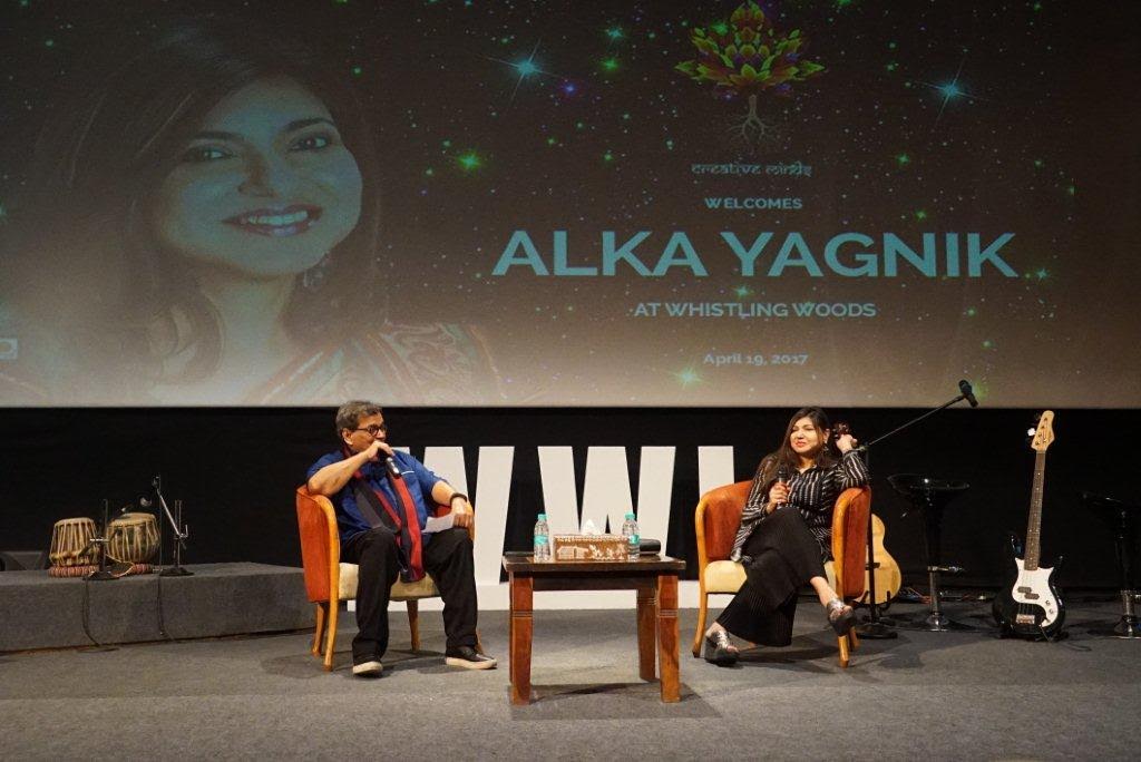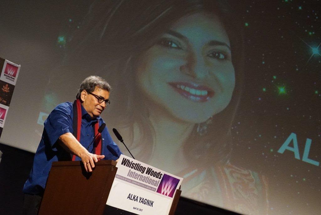 by The Daily Eye Team April 20 2017, 6:32 pm Estimated Reading Time: 2 mins, 26 secsMumbai 19th April 2017: One of the most illustrious singers of Bollywood, Alka Yagnik entered the auditorium for the 5th Veda session at Whistling Woods International (WWI), amidst roar of claps and much enthusiasm and excitement. The session witnessed Subhash Ghai (Founder and Chairman, WWI) unearth details about the singer’s life and her journey spanning over 3 decades in the industry.