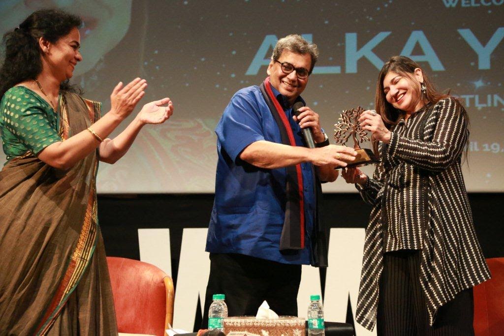 Clips of ‘Taal se Taal Mila’ (Taal), ‘I Love My India’ (Pardes), ‘Pardesi Pardesi Jana Nahi’ (Raja Hindustani and ‘Agar Tum Saath Ho’ (Tamasha) were played. Subhash Ghai shared that she has won a Filmfare Award for each of these songs. Additionally, the celebrated singer shared more behind-the-scenes events which captivated the audiences. The session ended on a sweet note with Alga Yagnik’s melodious voice charging the ambience which made the evening that much more special.
