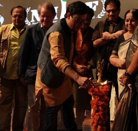 The auspicious lamp was lit by Mr. Sachin Pilgaonkar and Mr. Pramod Hindurao along with Shri Sagar Naik, (Mayor, Navi Mumbai), Mrs. Manda Mhatre, (Ex-MLC, Navi Mumbai), Actor Rakesh Bedi along with jury members Mr. Marc Baschet, Mr. Imtiaz Hussain and Ms. Rohini Hattanagadi.