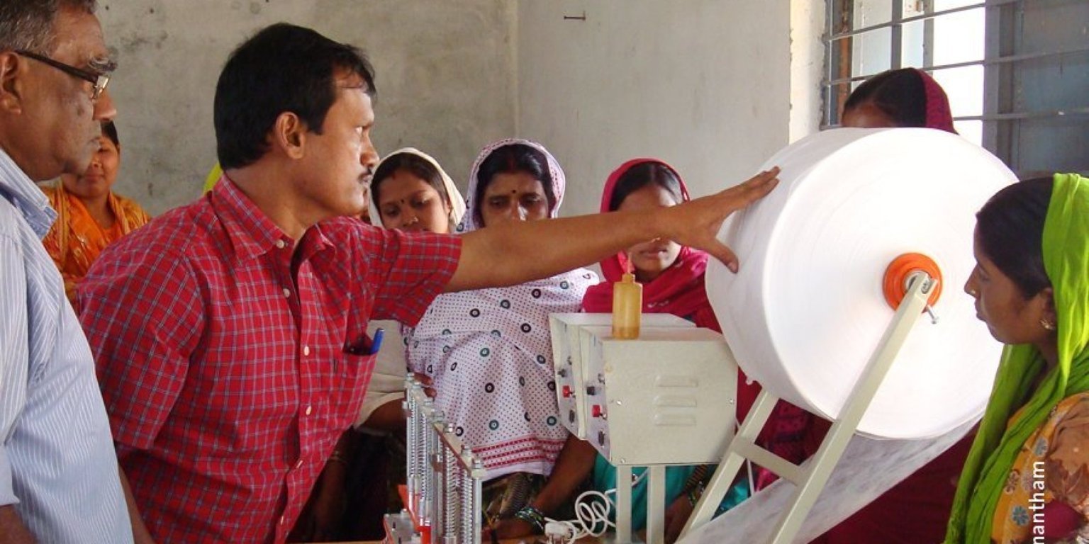 His breakthrough came in 2009 when he won an award from India’s National Innovation Foundation – which supports grassroots technological initiatives – to make and distribute machines for the manufacture of sanitary towels in rural communities. The machines are operated by local women in each area, which provides much-needed employment while also spreading awareness about menstrual hygiene. More than 600 machines have already been distributed in 23 states.