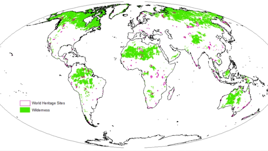 Very little of the world's wilderness (gre ... itage Sites (pink). (The conversation)