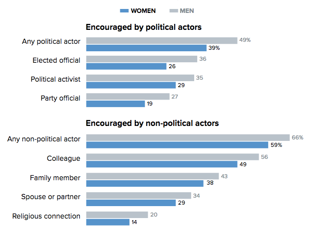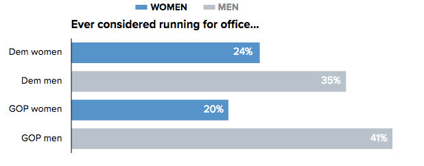 Women are much less likely than men to consider running for office.