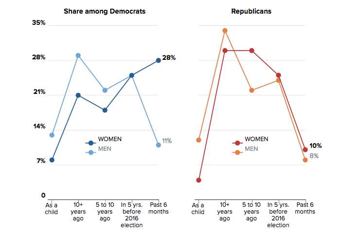 A new survey sponsored by POLITICO WOMEN, American University and Loyola Marymount University, finds that the last election in the United States of America, has mobilized Democratic women to take political action. Democratic women are signing petitions and making donations at much higher rates than they did before the election. But the poll also shows that women across political parties remain significantly less likely than men to have thought about running for office.