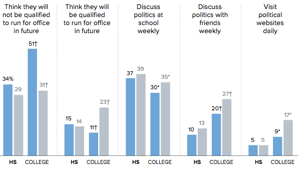 Students who said they might want to run for political office someday: