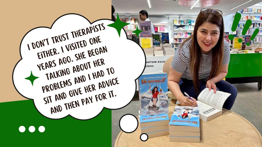 This I have to find out from those who are on Tinder. At the risk of spilling the truth about my age and showing my ancient views on this, I have been on no dating site at all. I am petrified. I did try a matrimonial site once, maybe ten years ago and that’s where I met Neville the Devil who plays the villain in my book. A Harvard-type, a finance guru with an artistic eye, a perfect gentleman who turns into a violent beast when I tell him marriage with us just won’t work. So, I’ve had my online nightmare!