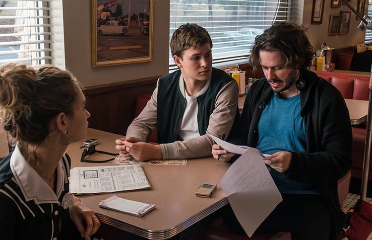 The movie starts off with a great heist and chase, and many more follow. All the chase sequences are so great; it would give Fast and Furious a run (or drive) for its money. Over the course of this movie we are introduced to characters with the most outrageous code names, like Bats, Buddy, Darling, and Griff. All the characters elevate the movie to new heights and the editing is just spot on, as expected from Edgar Wright. The character Doc is played by Kevin Spacey and he’s yet another scheming old man just like the one from his TV endeavors. Ansel Elgort fits into this role with perfection, he is calm and barely talks but is always listening and drives like he has the cheat codes to GTA San Andreas. Jon Hamm and Jamie Foxx play bank robbers and both add depth to this symphonic tale. The most stunning thing this movie has to offer is, wait for it, originality. Perfectly synced action to music makes you feel like your watching a high-octane music video, at least during the chase and action sequences. When your not getting blown away by the relentless fast pace sound, you get mellow classics for the more toned down romantic moments between the main characters. It’s not all car chases and shooting, no, it gets calm and heartfelt at times. This mellow portion of the movie is probably its lower points. These moments only make you wish that the melodic action came quicker.